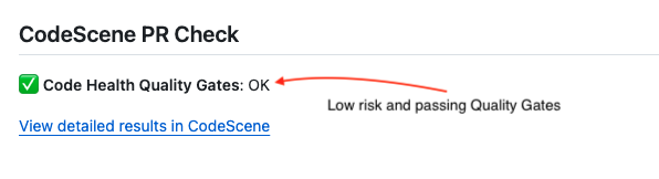Fig. 133 An example on CodeScene’s quality gates where Details contain actionable feedback (example from CodeScene’s GitHub integration).¶