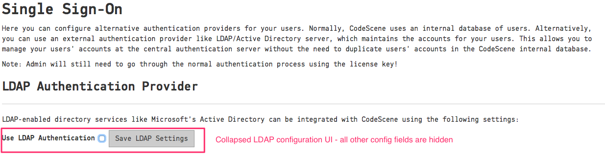 LDAP authentication is turned off by default and the configuration fields are hidden as shown in Fig. 239.